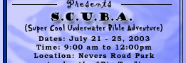 Copyright 2003 Group Publishing and New River Community Church. All rights reserved. SCUBA is a trademark of Group Publishing, Inc. and is used here with permission. Contacts: secretary@newriverchurch.org webmaster@newriverchurch.org